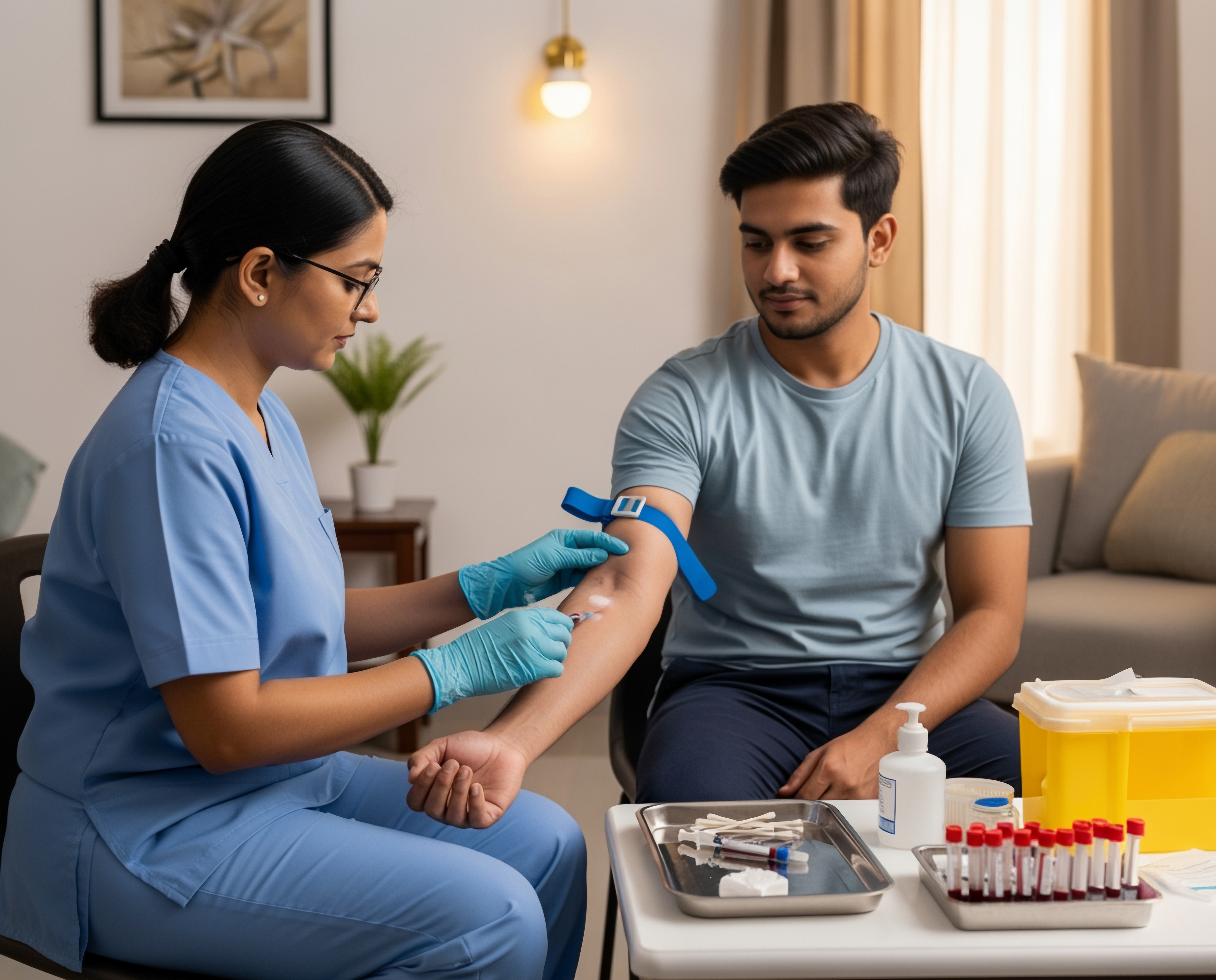 Blood tests help your doctors to assess your overall health by checking for certain diseases and conditions to know how well your body is working. Our nursing staff will come to your house, office or hotel to collect the samples effortlessly. Our Central and standard cap accredited Laboratory will Process your samples in no time. You will get the report on your registered email and WhatsApp.
